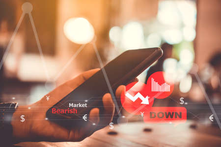 Stock market exchange loss trading graph analysis investment indicator business graph charts of financial board display candlestick double exposure crisis stock crash red price chart fall money