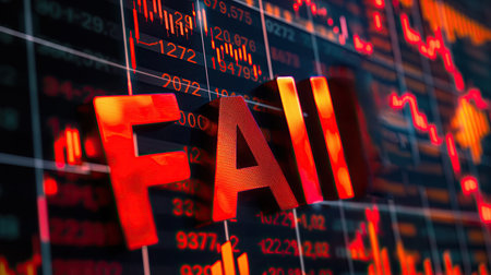 Failure Text Over Laptop Screen with Red Stock Market Chart Showing Down Trend, Concept Image