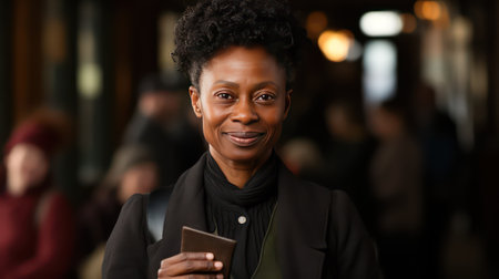 Successful African American businessman wearing eyeglasses exudes confidence at cafe. Concept Business Attire, Confidence, Eyeglasses, African American, Cafe