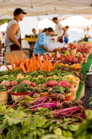 Local produce at the summer farmers market in the city.