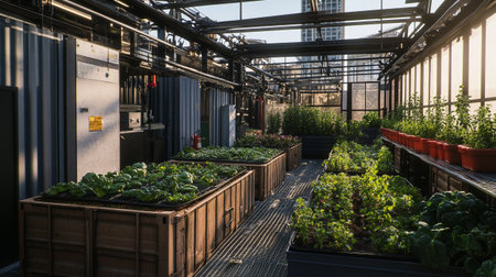 Aerial view of vegetable garden and greenhouse in Bangkok, Thailand.