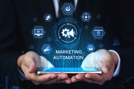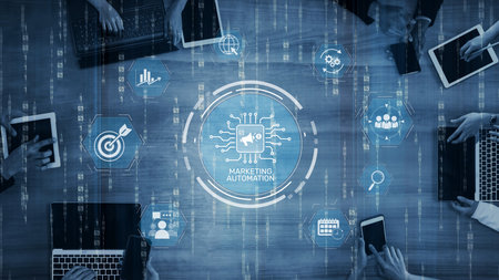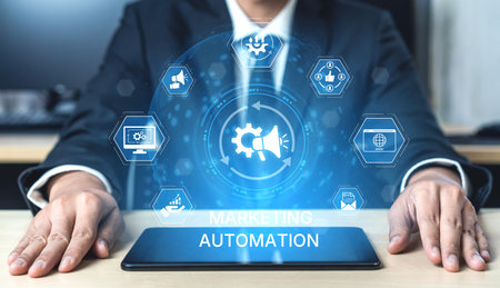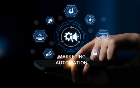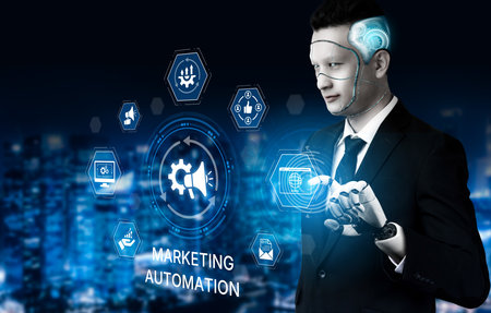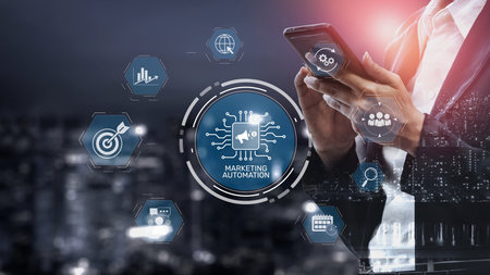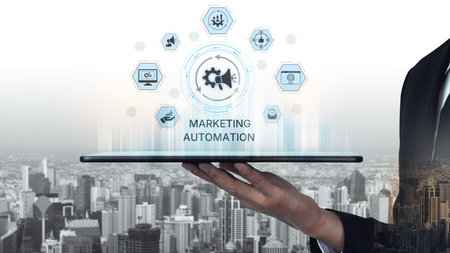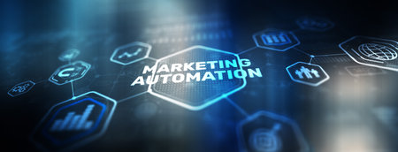 Marketing Automation Software Technology Process System Internet Business concept. Mixed media background