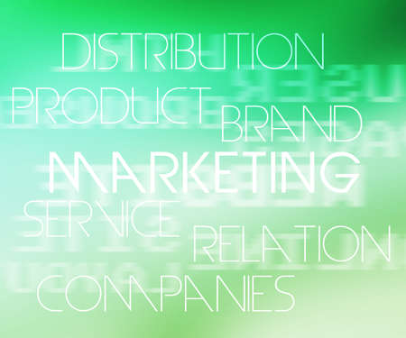 Deep blue background with subject words, which deal with marketing. The bold word is situated on the right side of composition. Close up. Copy space. 3D.