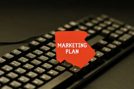 Sign displaying Marketing Plan. Business concept overall business strategy formed which they will implement Typing Online Member Name Lists, Creating New Worksheet Files