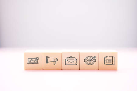 Online marketing written on wooden blocks. education and motivation concepts. Cross processed image on Wooden Background