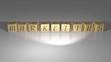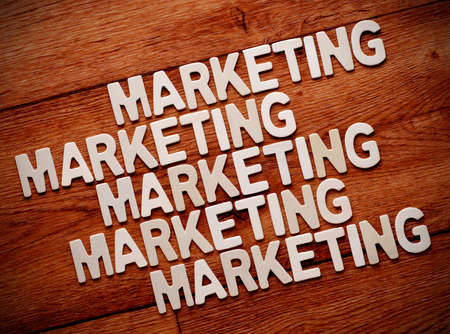 Wood cubes with the word “marketingâ€, close up picture with copy space