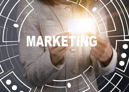 Marketing strategy concept on virtual screen. Internet, advertising and digital technology concept. Sales growth.