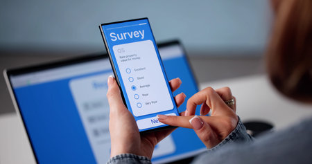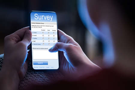 Close-up Of Young Businessman Hand Holding Smartphone Showing Online Survey Form