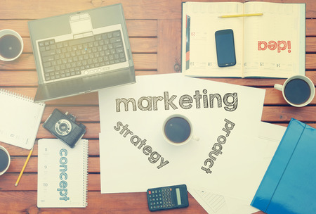 Wood cubes with the word “marketingâ€, close up picture with copy space