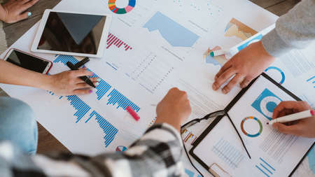 Business people brainstorming analysis chart strategy marketing at table office. Effective people in organization meeting use idea to consult work in company.