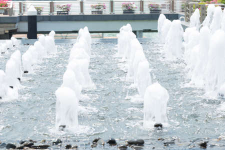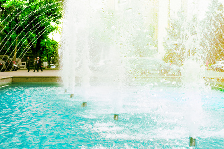 The gush of water of a fountain. Splash of water in the fountain, abstract image. bokeh of blue water