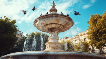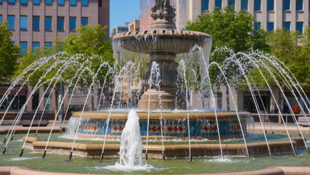 A stunning fountain with water gracefully cascading, creating a visually captivating display and adding elegance to the surrounding space.