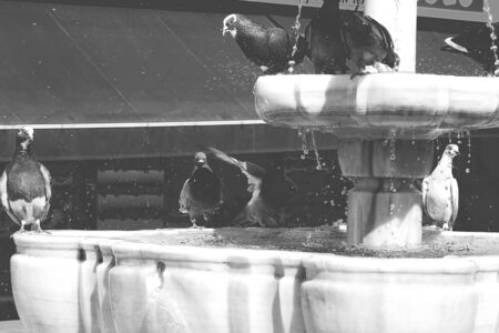 beautiful gray pigeons bathing in the fountain on a warm summer day in the Turkish city of Kusadasi