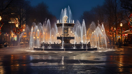 A highlighted New Year's fountain with lights creating an atmosphere of magic.