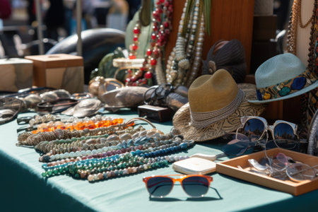 an array of sunglasses and accessories, including hats, necklaces, bracelets and more, created with generative ai