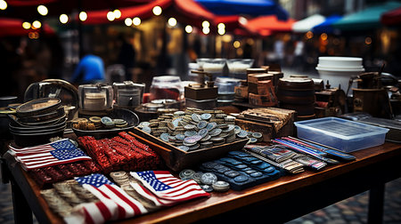 An antique market showcasing a variety of vintage items on display, reflecting history and charm through unique collectibles.