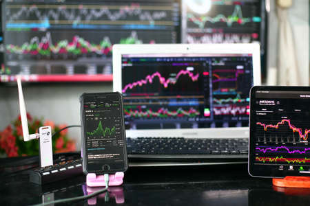 The Forex graph chart on the digital screen. Working set for analyzing financial statistics and analyzing a market data.