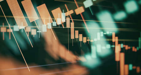 Stock exchange market chart background. Candle stick graph chart with indicator.