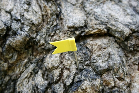 yellow plastic pins form on a cork board