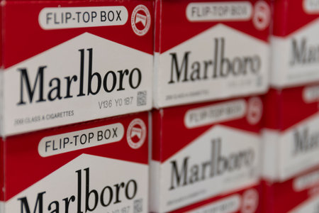 Kyiv, Ukraine - August 06, 2021: Box of Marlboro cigarettes