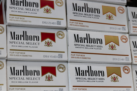 Indianapolis - Circa July 2020: Marlboro Cigarette display. Marlboro is a product of the Altria Group.