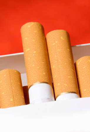 Close up tobacco cigarette background or texture. Heap of tobacco cigarettes close up from the front