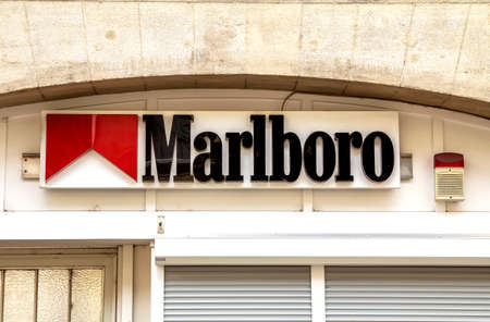 FURTH, Germany : Marlboro cigarette logo outside a shop. Marlboro is the best-selling brand of cigarettes in the world. It is made by Philip Morris