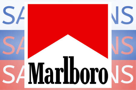 FURTH, Germany: Marlboro cigarette logo outside a shop. Marlboro is the best-selling brand of cigarettes in the world. It is made by Philip Morris