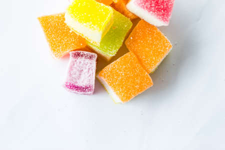 Sweet dessert. Colored marmelade candy. Food background