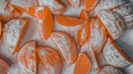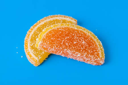 Slices of marmalade and one on the other. Yellow and orange.