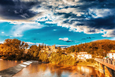 View of the little bridge in the town of Aire sur l'Adour in the New Aquitaine. France
