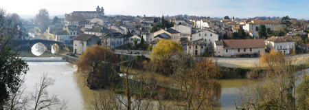 Panoramic view at the Bergerac town from bridge over Dordogne river in France