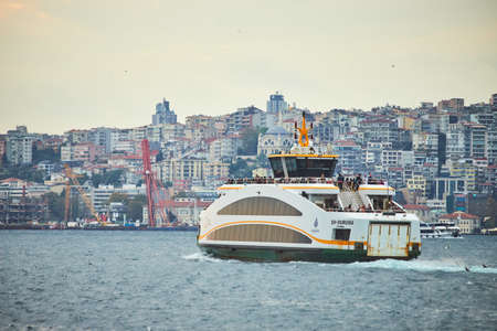 Istanbul and ferry. A ferry and cityscape of Istanbul on the background. Istanbul Turkey - 11.13.2021
