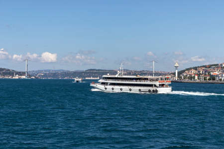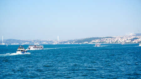 view of the Bosphorus and ships, ferry, and pleasure boat, seascape near Istanbul, Turkey