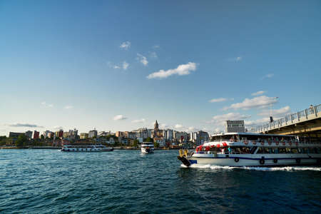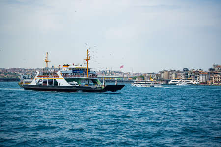 ISTANBUL, TURKEY - JULY 05, 2018: Passengers ferryboats in the Golden Horn bay of the Istanbul.