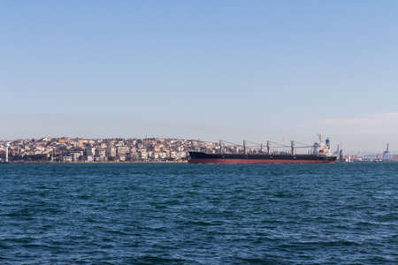 Tanker in the Bosphorus on the background of the city of Istanbul. Turkey