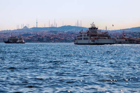 Transport ferry in the Bosphorus. Ferryboat carries passengers from the Asian part (Anatolia) to the European part - Thrace.