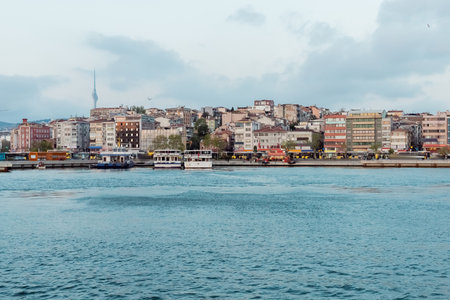 Istanbul, Turkey - May 28, 2022: View of the embankment, water and ships in the city of Istanbul on a summer day.