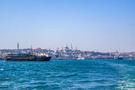 Istanbul photo. Historical peninsula of Istanbul and a ferry at daytime. Travel to Turkey background photo.