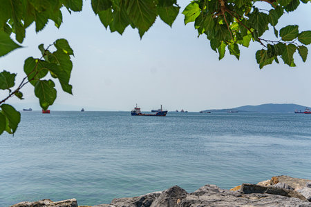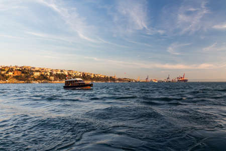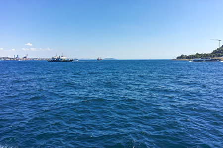 view of the Bosphorus and ships, ferry, and pleasure boat, seascape near Istanbul, Turkey