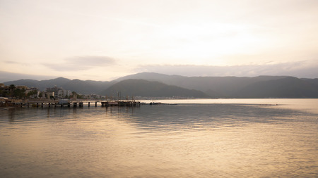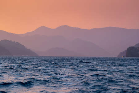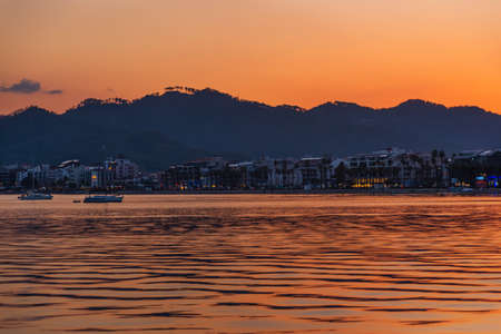 MARMARIS, MUGLA, TURKEY: Beautiful landscape with a view of the sea and mountains in the Turkish city of Marmaris at sunset.