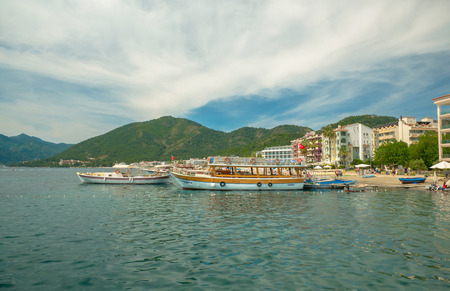 TURKEY, MARMARIS - APRIL 30, 2017: Port with yachts boats and boats in the touristic eco-friendly city of Marmaris in Turkey.