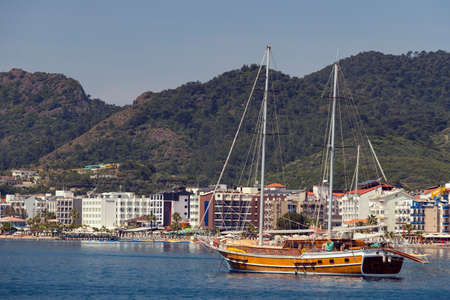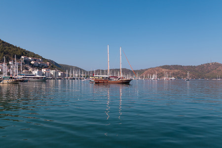 Ships with masts in the bay of Marmaris.Turkey.