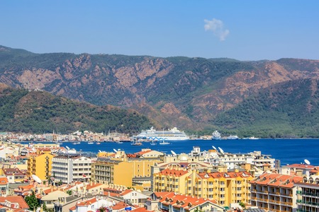 Amazing top view on Marmaris Turkey resort near the Mediterranean Sea. Summer travel vacation.