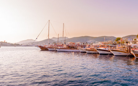 View of Marine with luxury yachts and sail yachts in Bodrum harbor.Bodrum,Turkey.23 August 2017.