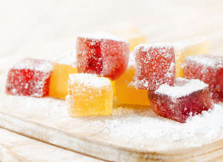 Tasty french dessert, natural colorful fruit pate jellies or madmalade