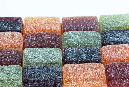 colorful fruit jelly candy on white backdrop