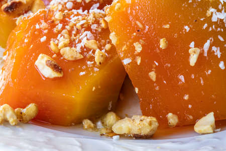 Pumpkin dessert with sugar, pecan