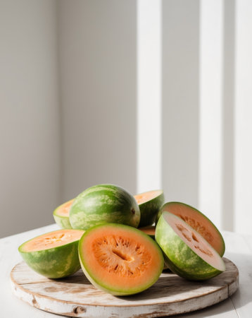 Juicy slices of ripe melon, a refreshing summer snack generated by artificial intelligence