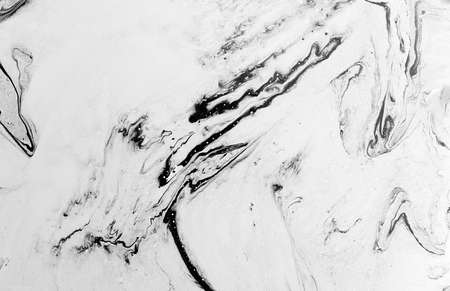 Liquid black ink in water. Marble art effect. Creative abstract artistic background. Space for text. Small bubbles and dots details.
